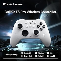 AKNES GuliKit ES PRO Wireless PC Gaming Controller for Switch 1/2, Windows/Android/Mac/Steam Deck with 3.25ms Low Latency, Magnetic TMR Joysticks, Switch1/2 Wake-Up, Tactile Switch D-pad - White