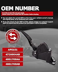 Vehicle Fitment - Designed for Chrysler 300 2005-2006, for Dodge Charger 2006, for Dodge Magnum 2005-2006 OEM Number - APS151 4726004AB 4861708AA 4861708AB. Please check your replacement OE number or model Specification - Attachment Method: Bolt On; Connector Gender: Female; Connector Quantity: 1; Connector Shape: Oval; Connector Type: Plug In; Mounting Location: Floor Mounted; Terminal Gender: Male; Terminal Quantity: 6; Terminal Type: Blade High Quality - Acceleration pedal position sensor is made of high-quality plastic and metal materials, with strong anti-interference ability, good stability and long service life Function - It detects the driver's throttle pedal position and converts it into an electronic signal to control engine power and fuel delivery precisely
