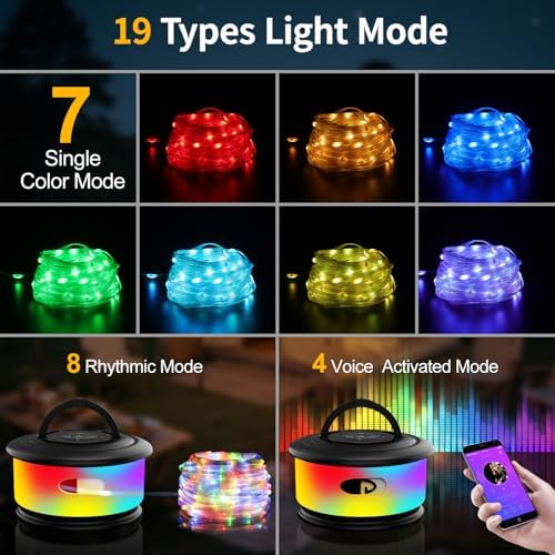 - Rich lighting effects: Camping string lights indoor outdoor provide - 7 Single color string lights, RGB flash, RGB breathing, camping light + string light, The lights can also move according to the rhythm of music.Great for Christmas, Halloween, decor, indooor, outdoor, camping, yard, hiking, awning, tent, garden, party, RV, festival.