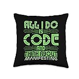 Funny Coding and Manifesting for Programmers and Dreamers Throw Pillow