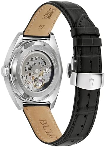 Bulova Men's Automatic Dress Classic Surveyor Watch, Black Leather Strap, Full Skeleton Dial, 42 Hour Power Reserve, 41mm