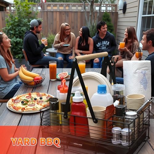 - 【Portable All-in-One BBQ Caddy】Smooth wooden handle makes it easy to carry from kitchen to grill, tailgate, or campsite. Keep your barbecue tools and condiments together wherever you go.