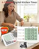 Digital Kitchen Timer for Cooking - 4 Channel Count Up Countdown Timer with Loud Alarm and Silent Mode, Large Display, Magnetic Back, Auto Memory for Classroom Study Gym, Battery Included (White&Grey)