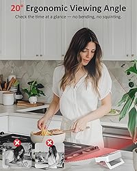 4 Timers Running at Once: Cooking multiple dishes? No problem. Our large screen digital kitchen timer features four independent timers (T1/T2/T3/T4) displayed clearly on one big screen, so you can see all countdowns at a glance without switching views or juggling multiple devices. Each timer runs separately with its own settings, helping you stay organized and avoid overcooking. Ideal for busy kitchens, baking sessions, BBQ, meal prep, and time management for kids or study Designed for Better Visibility While You Cook: The upgraded stand lets you adjust the cooking timer to a comfortable 20° countertop viewing angle, making the screen easier to read while chopping, stirring, or moving around the kitchen. This angle reduces glare and aligns better with natural eye movement, giving you a clear view of your countdown from almost any position. No need to bend down or squint Magnetic Back for Easy Placement Anywhere: The built-in strong magnetic back securely attaches the timer to your fridge, oven, microwave, or any metal surface, keeping it firmly in place without slipping or falling.Prefer countertop use? Simply flip out the sturdy adjustable stand for stable upright viewing. Keep the timer at eye level for quick checks, grab it easily when needed, and enjoy hands-free convenience while cooking. Perfect for kitchen cooking, workouts, classrooms, homework, meetings, and more Loud Alarm or Silent Flash: Our digital timer can Switch between Loud Alarm and Silent Mode based on your surroundings: Loud mode lets you hear alerts from another room - great for cooking safely; Silent mode uses a soft flashing light for quiet environments such as offices, classrooms, libraries, or study rooms.Each timer button flashes in a different color when time’s up, making it easy to spot which one is done. The alarm will automatically stop after 60 seconds, helping save battery and prevent unnecessary noise if you don’t turn it off right away Perfect for Everyday Use & Gifting: Counts up or counts down for up to 99 hours 59 minutes 59 seconds, making it ideal for cooking, workouts, games, kids’ activities, meetings, and daily time management. When power runs low, a battery icon appears on the left side of the screen to remind you to replace the batteries in time—so you never miss important timing tasks. With its practical features and wide usability, it’s a great gift for home cooks, parents, teachers, students, seniors, and busy families. The package includes 2 AAA Batteries, Lasts 3–6 Months