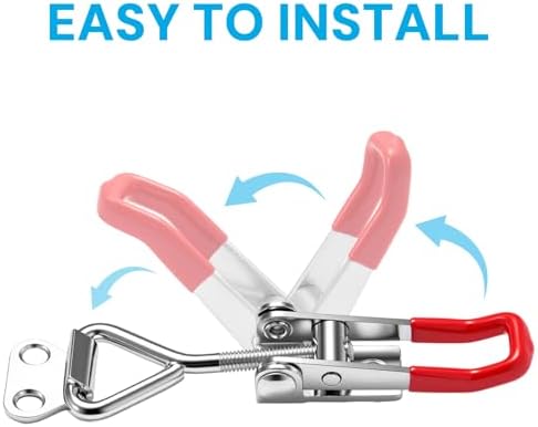 - High quality and durable:The toggle clamp is made of galvanized metal, strong and corrosion-resistant, without fear of changing indoor and outdoor climate and temperature differences. Equipped with anti-slip soft plastic handle, it is comfortable and labor-saving to operate, safe and durable, and has long-term high performance.