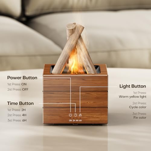 - 【Campfire Bonfire Shape & Flame Light】it designed like a burning campfire and will give your home a touch of warmth and ambiance.It is not only a diffuser, can also be a night light or home decoration. You can Suitable for bedroom, office, home, yoga, etc