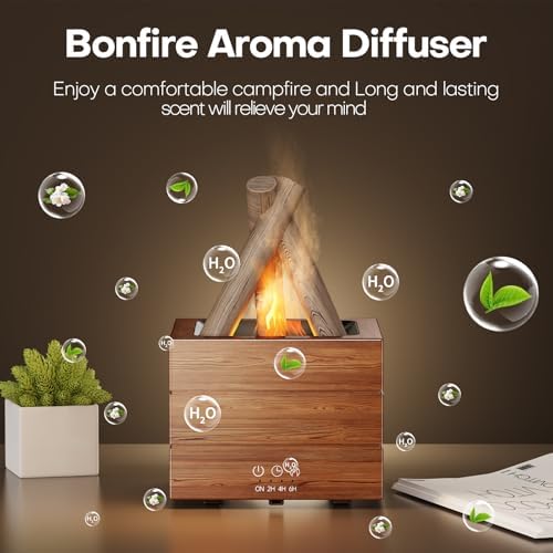 Bonfire Essential Oil Diffuser Flame Aromatherapy Diffuser Machine 280ML Fire Mist Humidifiers 8 Color LED Lights Campfire Diffusers for Home Office Bedroom