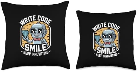 Write Code Smile Keep Innovating Robot for Programmers Throw Pillow