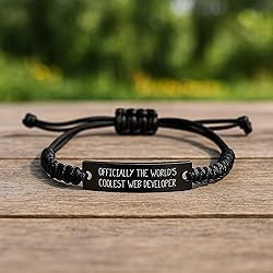 - Are you looking for a unique gift for the Web Developer in your life? Look no further! This 'Officially The World's Coolest Web Developer' quote rope bracelet is the perfect present for any occasion, especially birthdays. Made with high-quality black stainless steel and interlaced rope, this adjustable bracelet is resistant to rust, corrosion, and tarnishing. Send this thoughtful gift from friends, family, or coworkers to show your appreciation for the Web Developer's hard work and dedication. This rope bracelet is not only a stylish accessory but also a meaningful memento that will be treasured for years to come. Whether you're looking for a birthday gift for a man or woman, or a unique present for a coworker or family member, this quote rope bracelet is sure to impress. So why wait? Don't miss out and show your Web Developer that you care! Don't miss out on this opportunity to make a lasting impression. Order your 'Officially The World's Coolest Web Developer' quote rope bracelet today!