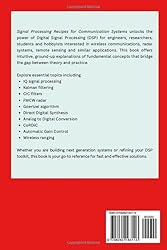 - Signal Processing Recipes for Communication Systems unlocks the power of Digital Signal Processing (DSP) for engineers, researchers, students and hobbyists interested in wireless communications, radar systems, remote sensing and similar applications. Whether you are optimizing wireless communication systems, designing radar platforms, or diving into embedded DSP architectures, this book offers intuitive, ground-up explanations of fundamental concepts that bridge the gap between theory and practice. What’s Inside?IQ Signal Processing: Get an in-depth understanding of in-phase and quadrature signals for modulation, demodulation, and the role played by phase in time and frequency domains.Kalman Filtering: Apply recursive estimation for tracking, sensor fusion, and adaptive filtering.CIC Filters: Implement efficient Cascaded Integrator-Comb filters for decimation and interpolation in multirate systems.FMCW Radar: Explore Frequency Modulated Continuous-Wave radar design and signal analysis for precision ranging and detection.Goertzel algorithm: Detect specific frequency components of a signal in a computationally efficient method.Direct Digital Synthesis (DDS): Generate high-resolution waveforms with minimal hardware using DDS techniques.Analog-to-Digital Conversion (ADC): Understand quantization, sampling, and performance tradeoffs for high-performance DSP.CoRDiC: Learn a powerful iterative technique for performing trigonometric, hyperbolic, and similar functions without multipliers—ideal for embedded DSP applications.Automatic Gain Control (AGC): Design robust AGC loops to maintain signal integrity across dynamic environments.Wireless Ranging Technologies: Phase-based signal processing techniques behind distance estimation in wireless systems.Why This Book?Recipe-style chapters: Each topic is presented from the ground up with clear objectives, implementation steps, and practical insights.Beautiful figures: Illustrative diagrams to clarify complex signal flows and system architectures.Code-ready concepts: Ideal for rapid prototyping and integration into real-world systems. Who Should Read This? • Wireless communication, remote sensing and radar system engineers seeking efficient DSP solutions • Graduate students and researchers exploring the fundamentals of signal processing methods • Embedded developers integrating DSP algorithms on microcontrollers and FPGAs • Anyone aiming to bridge the gap between theoretical DSP concepts and practical implementations