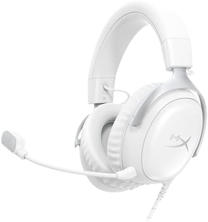 HyperX Cloud III – Wired Gaming Headset, PC, PS5, Xbox Series X|S, Angled 53mm Drivers, DTS, Memory Foam, Durable Frame, Ultra-Clear 10mm Mic, USB-C, USB-A, 3.5mm – White