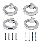 - Product Description: Features: Quality Material: Solid zinc alloy ring knobs provide reliable performance. Round design offers comfortable grip for cabinet doors and drawer fronts throughout your home. Easy Installation: Single hole mounting system simplifies setup process. Complete with matching screws that fit standard cabinet thicknesses for quick hardware updates. Versatile Style: Sleek circular pulls enhance kitchen, bathroom, and bedroom furniture. Classic shape complements both modern and traditional interior design themes. Multi-Room Application: Perfect for wardrobe doors, dresser drawers, and cabinet upgrades. Transform any furniture piece with these stylish handles for cohesive home decor. Product Specifications: Material: Zinc Alloy Color: Silver Size: 46mm×40mm×11mm(1.81inch×1.57inch×0.43inch) Package contains: 4Pcs Imitation gold Zinc Alloy Cabinet Ring Knobs. NOTE: Please allow 1-2mm difference between actual and manual due to manual measurement. The color you actually see may be slightly different due to different displays.
