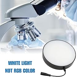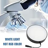𝐀djustable 𝐁rightness & 𝐏ure 𝐖hite 𝐋ight: Features adjustable brightness from 0% to 100% with a 6–10W pure white LED light, allowing you to adapt the illumination to different working environments. Provides bright, clear, and shadow-free lighting for precise observation. PLEASE NOTE THIS ILLUMINATOR FEATURES WHITE LIGHT, NOT RGB COLOR 𝐃urable 𝐀𝐁𝐒 𝐂onstruction: Made of high-quality ABS plastic, this ring light is lightweight, tough, and durable, offering excellent stability and long service life even with extended use. 𝐏ractical 𝐃esign: Designed with a compact and integrated circular structure, this illuminator is easy to install and space-saving. Provides cool, strong, and focused illumination without shadows, perfect for stereo or binocular microscopes. 𝐖ide 𝐀pplication: Designed for use with stereoscopic, binocular, and trinocular microscopes, this LED ring light provides adjustable brightness and shadow-free illumination, making it ideal for various observation and reflection applications. Can be applied to a wide range of places such as laboratories, libraries, study rooms, school 𝐒pecifications: Features an outer diameter of 134–135 mm, illumination diameter of 130 mm, and thickness of 25 mm. Delivers 6–10W pure white light with adjustable brightness for precise lighting control. Package includes one circular LED illuminator and one power adapter for easy setup and reliable performance.