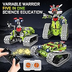 5-in-1 Robot Building Kit : Technique building toy can be built into 5 different models, including a tracked robot, tanks, engineering vehicles and other models, The RC building luminous robots set allows kids explore more imaginations and creativity, Excellent STEM kits for children age 8-12. APP & Remote Control : This technology vehicle kit boasts both 2.4GHz remote control and APP dual control functions, with 4 different modes: Driving mode, Gravity sensor, Path and Programming mode, remote control range of up to 25 meters, and movement in all directions. Easy Assemble Toys & Family Bonding : This building blocks robot set comes with nice gift box. Contains 2 assemble instructions, each step is easy to follow.This toy can develops kid's creativity and hand-eye coordination,strengthen imagination. Designed for independent play or parent-child collaboration, this kit builds confidence and quality family time. Flexible remote control : This technique building toy multiple joint movements possible, which makes it easier to move in all directions - left, right, front, back, and 360 degree rotation stunts on smooth and flat indoor or outdoor floors. Christmas Gifts For Kids : This STEM educational building block toys with 705 pcs building bricks allow kids to explore more possibilities. This interstellar robot inspires children's interest and imagination in space. Let the child become an interstellar commander.