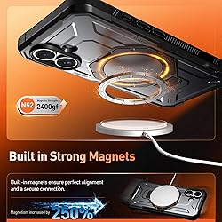 [iPhone 17 Case 15 Feet Drop Tested] - 15FT Military Grade Drop Tested Case Protects your iPhone 17 phone from all angles. Four corner airbag design make it Shock Proof/Drop Proof/Impact Resistant/Scratch Proof. [Control capture Button] - Built-in camera control capture button, provides precise, responsive control with wide coverage, fully compatible with the iPhone’s camera button for quick adjustments via click, press, or swipe, ensuring a seamless experience. [MagSafe Ring Stand] - The iPhone 17 Case includes a hidden magnetic Aluminum Alloy Ring stand with the strongest N52 magnet array, boasting a 15N ultra-strong magnetic force up to 1350g. It is compatible with MagSafe wireless chargers, magnetic car mounts, magnetic wireless chargers, and wireless chargers. [Anti-Slip texture edge I Safe Screen Protection] – Anti-Slip texture edge is designed on both sides of the case for easy holding. Extra raised lips and corners of the front hard frame provide super protection from drops, keep your screen safe. [iPhone 17 Case] - This case is design to be lightweight and sleek, meanwhile also providing heavy duty protection without the bulk.