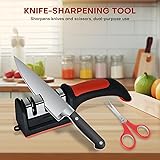 【Everyday Sharpness】 – Keep your knives razor sharp for daily cooking, from slicing vegetables to cutting meat 【3-in-1 Slots 】– Repair, sharpen, and polish knives with coarse, fine, and ceramic slots. Suitable for kitchen knives and utility blades 【Safe & Comfortable】 – Non-slip base and cut-resistant handle provide secure use for the whole family 【Multi-Use Sharpener】 – Works on chef knives, paring knives, and scissors, making it a versatile household tool 【Compact & Durable】 – Lightweight, sturdy, and easy to store in any kitchen drawer or cabinet
