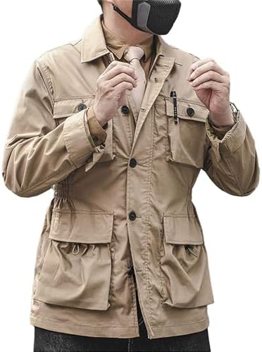 Men's Safari Jacket Button Up Outdoor Military Windbreaker with Pockets