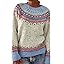 Fair Isle Sweater Women Fall Knitted Vintage Embroidered Sweaters Crewneck Stripes Long Sleeve Casual Boho Tops