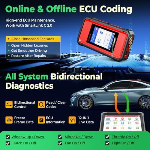 • 【3000+ Active Tests】Imagine sending signals directly to every part of your car, no need to remove or adjust anything. This bidirectional scanner runs 3000+ active tests and tells you in seconds or minutes: “if a part needs fixing or replacing”. You can quickly check every actuator: fans, lights, horn, doors, windows, br3kes, throttle, A/C, clutches, mirrors, pumps, and more, saving the time normally spent on single-item tests and getting mechanics straight to the problem.