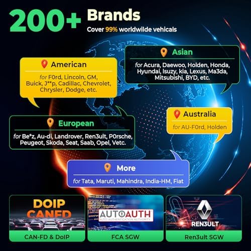 • 【Widespread Compatibility】The X431 PRO3 V+ Elite boasts the late-st SmartLink C V2.0 box, which supports Online Protocol (for Be*z & B*W) and can be a J2534 pass-thru device (requires OE protocol software). It handles all major car protocols: CAN 2.0, CAN-FD, DoIP; covers 200+ brands including heavy-duty, new-energy, passenger vehicles, plus FCA & Ren3ult SGW-equipped cars. The interface is multilingual, offering menus in 25+ languages.