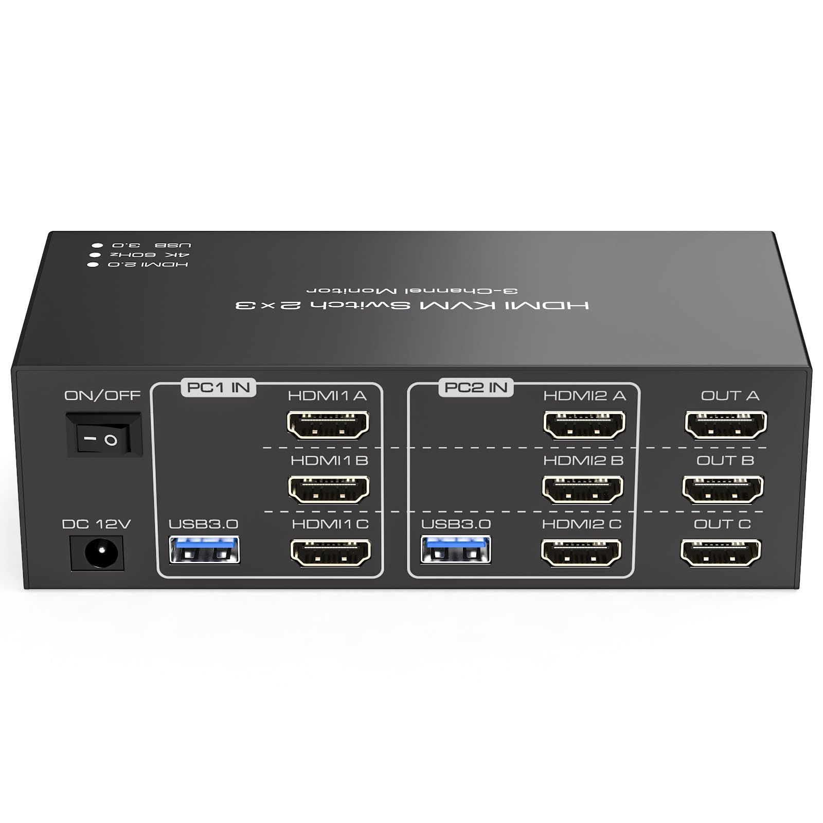 - 【Dual Monitors HDMI KVM Switch for 2 Computers】Easily control and switch between 2 computers using a single set of keyboard, mouse, while sharing two displays. Perfect for multitasking across work, entertainment, and gaming setups. Note: Dual-monitor functionality requires each computer to have two video output ports that support dual-display mode.