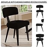 KATBOC 47 Inch Round Dining Table Set for 6, Modern Small Dining Table Set with 6 Boucle Chairs, Glass Kitchen Dining Set for Dining Room Kitchen Apartment(All Black)