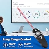- Elevate your presentations with the advanced wireless presentation clicker. Expertly engineered for smooth slide control, this versatile PowerPoint remote is the useful tool for educators, business professionals, and public speakers. Its intuitive interface lets you navigate your presentation effortlessly with just a single click Equipped with useful features, the presenter includes a built-in red light pointer to highlight key points and capture your audience’s attention. The convenient USB-C wireless receiver offers wide compatibility with laptops, desktops, and other devices, making it a useful accessory for frequent presenters You can move around the room, interact with your audience, and maintain precise control over your slideshow Designed for performance, this slide advancer helps you present with confidence—whether you’re leading a corporate meeting, teaching a class, or speaking at a major event. Trust in a tool that supports consistent, professional delivery every time