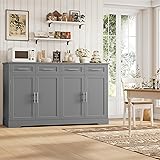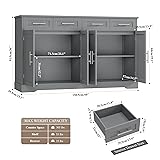 - HOSTACK 60" Wide Modern Kitchen Buffet Sideboard Cabinet Brings a relaxed and airy feel to your home with its popular Hamptons style Features: - 4 Deep, Easy-glide Drawers - Anti-tipping Hardware - Exquisite Metal Handles - Elegant Bevelled Base - 60" Spacious Tabletop - Extra Tall Body - 4-Door Cupboard each with Internal Fixed Shelf Specifications: - Color: Grey + Silver Handle - Material: MDF Wood - Overall Size: 15.75" D x 60" W x 36.02" H - Overall Weight Capacity: 450 lbs What's in the box: - 1x Large Kitchen Cabinet - 1x Step-to-step Instructions - 1x Accessories Bag