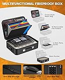 【UL-94 V-0 Certified Fireproof Box】This fireproof document box is made of silicone-reinforced fiberglass and EVA, and has passed UL-94 V-0 fire tests. This fire file organizer shields passports, tax returns, and contracts from flames and heat, keeping critical docs intact during fire emergencies 【Hard-Shell Box Design】As a reliable fire box safe for documents, it features a thick hard shell that resists daily wear, drops, and impacts. Unlike flimsy soft cases, this hard shell maintains its shape long-term—preventing papers from creasing or being crushed 【Detachable Organ Page Folder】This fireproof document organizer box comes with 12 accordion bags—its detachable design makes it more convenient to carry and use separately when on the go, keeping your papers organized and secure 【Large Capacity Fireproof Document Box】Exterior Dimensions: 15 x 11.2 x 5.5 inches (Interior Dimensions: 14.5 x 10.6 x 5.1 inches). This high-capacity fireproof file box includes 2 cross-mesh pockets, 12 removable accordion pages, 16 card slots, 2 USB pockets, 4 pen slots, and a safety latch. As an important document organizer, it offers ample space for all important files—no more stacked or compressed docs, plus fireproof security 【Fireproof Box with Lock】Equipped with a 3-digit combination lock on its metal zipper, this document safe blocks unauthorized access to confidential files. Paired with its fireproof design and a comfortable metal handle, it serves as a reliable fireproof document safe—ideal for home, office, and travel use