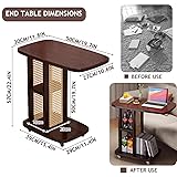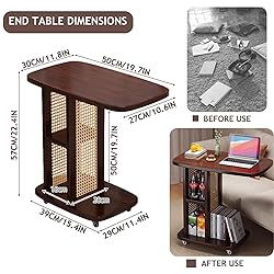Exquisite Decoration: This nightstand table is constructed from thick wood, ensuring strong load-bearing and long-lasting use. Its walnut color and delicate rattan design add a sophisticated touch to your couch table, perfectly complementing Mid-Century Modern decor. Pair it with other beautiful furniture and use it as a coffee table, a side table for a chaise lounge, or a sofa tray in your living room or bedroom C-Shaped Design: The C Shaped end table is easy to slide into the underside of the sofa,bed or chair,offering you convenient access to your snacks,drinks,phone,tablet,books etc. This side table comes with wheels on the bottom, you can easily move it to where you want to go Large Storage Space: The sofa side table measures 19.7 x 11.8 x 22.4 inches. A laptop or tablet can be placed on the top for work. The partition design in the middle allows you to store snacks, books, records and other miscellaneous items, providing you with more storage space Space-Saving Side Table for Couch: Space-Saving Side Table For Your Couch: If you're looking for space-saving furniture for a small room, this compact sofa table is perfect for you. It doesn't require much space but is incredibly useful as a versatile side table, coffee table, or snack holder Easy to Assemble: The end table with storage features a simple structural design and clearly labeled parts, allowing for quick and effortless setup—just follow the instructions to assemble it in no time