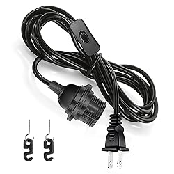 - This UL-Certified 20ft light bulb cord with plug makes it easy to safely install your pendant light in minutes. Fits standard E26/E27 bulbs (up to 100W, 110V-230V). The light bulb holder with cord comes with an On/Off switch and no electrical skills needed! Just plug it in, and you're ready to shine. This e26/e27 socket is perfect for both functional and creative lighting setups, adding a bulb, or attaching custom lampshades to craft an chandelier or a bedside lamp, The lamp cord with plug is Ideal for DIY lighting projects. Our swag light kit is versatile for various spaces like garage workbenches, basement renovations, or temporary craft stations. This e27 socket for lamp is for plant lovers, this light kit for lamp includes 4 S hooks ,4 J hooks and 4 screw rings , allowing for easy height adjustments. single bulb cord