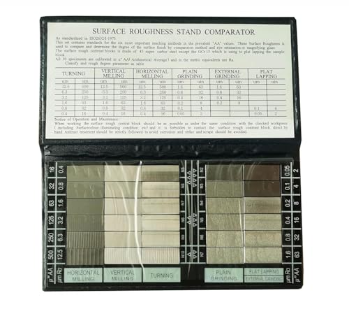 - This set contains standards for the six most important maching methods in the prevalent "AA" values. These surface rouhness is used to compare and determine the degree of the surface finish by comparision method and eye estimation or magnifying glass.