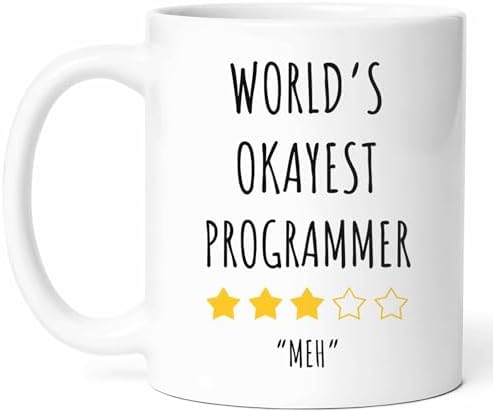Okayest Programmer Mug - Average Coder Coffee Cup - Developer Funny Gift From Teammates - Tech Specialist Tea Mugs - Coding Expert Cups - 11 Oz Ceramic Gifts For It Birthday, Him, Her, National Week