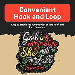 🌸 Faith-Inspired Design: This Christian patch features the powerful Bible verse Psalm 46:5 "God is Within Her She Will Not Fall" reminding believers of their calling in Christ, measuring at 3.2" x 3". 🌸 Easy Application: These "God is Within Her She Will Not Fall" religious patches features a convenient hook and loop fastener backing, can be effortlessly attached to any loop surface and instantly elevating your style. 🌸 Glow in the Dark Christian Embroidery Patch: Charge it up under light and watch it glow! These faith inspired patches are built to last. The merrow edge ensures added durability, making them easy to maintain and clean. 🌸 Versatile & Stylish: These cute patches adds a unique faith-based touch to clothing, bags, vest, backpacks, caps, jackets, jeans and more. Perfect for church groups, Christian events and those who embrace Christ-centered accessories. 🌸 Meaningful Gift Idea: A thoughtful gift for Christian men, women, teens, youth groups, or anyone wanting to wear their faith proudly. Each package includes 1 piece embroidered patch.