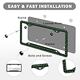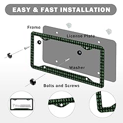 Green Binary Code License Plate Frames - 2 Pack Aluminum Front & Rear Auto Car Tag Holder, 4 Holes Heavy Duty Bracket with Mount Hardware, Rattle Proof Screws Fasteners Caps