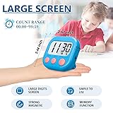 - 12-Piece Set: Includes 12 digital timers in four colors: white, green, orange, and blue (3 of each). Perfect for multi-user environments like kitchens, classrooms, gyms, or labs. (Battery not included.) Large Screen Timer: Features a 2.2" x 1.18" large display with high-contrast black digits, visible even from 3–5 meters away. Perfect for busy kitchens or classrooms where quick visibility matters. Easy to Place: The timer has a stand on the back for easy placement. It is also magnetic, allowing it to be attached to the refrigerator or other ferrous objects.