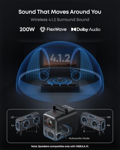 - 200W Cinema-Grade 4.1.2 Surround Sound: Bundled with two wireless Wi-Fi speakers to provide lossless surround sound with 25 ms ultra-low latency. Works with a wireless microphone for unforgettable parties and karaoke nights.