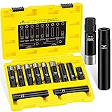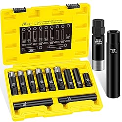 Complete Lug Master Key: The lug nut key set fits all common locking lug nuts (5, 6, 7, 10, 12-Spline, and Hex Style) on factory and aftermarket wheels. Its extended deep socket fits Spiked and Hex nuts that standard keys cannot reach 11-Piece Spline Socket Set: 9PCS universal sizes for spline lug nuts: 5-Spline (5/8"), 6-Spline (41/64", 45/64"), 7-Spline (3/4"), 10-Spline (TA20-17/19, TA20-19/21, TA23-21/22), 12-Spline (11/16", 13/16"); 2PCS deep lug key for spiked style (Hex 19mm, 7-Spline 3/4") Dual-Reinforced Socket: Forged from high strength CR-MO steel with a reinforced stainless steel ring, the spline lug nut socket is built to prevent breakage. The black phosphate coating provides corrosion resistance for long-lasting durability Dual-Drive Spline Key: With either a double-hex or 1/2-inch drive, this wheel lock removal kit fits hand and low-torque power tools. It is recommended for use with a lug wrench to ensure durability and prevent damage from high force Pre-Purchase Check: Each wheel lock socket is laser-etched with its inner diameter for easy identification and comes in a protective case. Please verify that your tire lug nuts' spline count and diameter match this spline key before purchasing