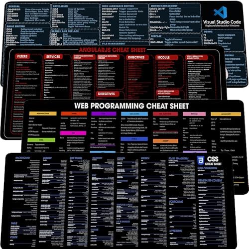 - All-in-One Coding Reference – 4 high-quality mouse pads featuring AngularJS, CSS3, Visual Studio Code, and Web Programming quick guides.
