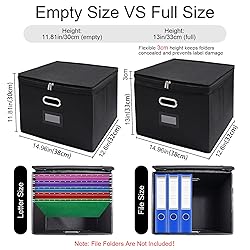 Large Storage Capacity: This set includes 4 file organizer boxes with lids and 8 plastic slide rails, perfect for organizing letter and legal size documents, offering plenty of space to store tax forms, bills, certificates, and more, keeping everything organized and easily accessible (Note: Folders are not included) Enhanced Protection & Privacy: The sturdy lid provides dust protection, while the double zipper ensures security and privacy. Hidden folder hangers keep files secure and prevent them from falling out when the lid is opened, making it a reliable file storage box with lid Durable & Stylish Design: Made from scratch-resistant materials, this file box with lid includes robust plastic slide rails to securely hang files. The sleek design suits any décor, and it's collapsible for easy storage when not in use Effortless Organization: Perfect for home offices, classrooms, small businesses, or personal use, this file organizer box helps organize documents, bills, educational materials, and more, keeping your workspace neat with these storage file boxes Versatile for Every User: Perfect for teachers, professionals, students, and small businesses, these file organizer boxes with lids keep documents and certificates organized. They also serve as home storage for clothes, books, kitchen items, and more