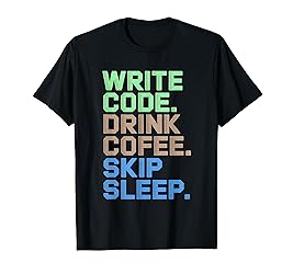 - A sharp design showing the coder lifestyle: write code, drink coffee, skip sleep, repeat until deadlines vanish. A great present for software engineers, coders, and hackers who embrace the caffeinated, sleep-deprived coding grind.