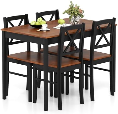 Giantex 5-Piece Dining Table Set for 4, Rectangular Kitchen Table & 4 Chairs with Rubber Wood Legs, Cross Backrest, Space-Saving Mid Century Modern Dinette Set for Dining Room, Breakfast Nook, Dinner