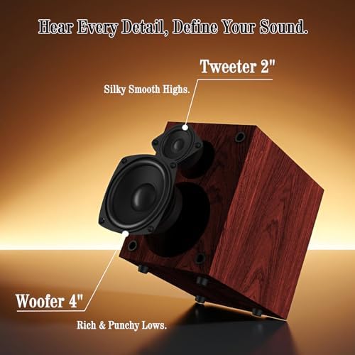 - [Immersive Hi-Fi Sound Quality - 40W Peak Power] Immerse yourself in a rich and clear auditory experience powered by a robust 40W peak power output (2 x 20W RMS). This system delivers exceptionally balanced sound with deep, resonant bass and crisp, detailed highs through its 4 Ohms impedance speakers, filling any room with concert-like clarity and depth for music, movies, and radio.