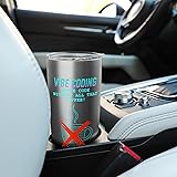 Hilariously Humorous Clothing Vibe Coding Joke Dual wall insulated: keeps beverages hot or cold Stainless Steel, BPA Free Leak proof lid with clear slider