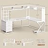 - 【Large Storage Space】L shaped computer desk with 7 open shelves, 3 fabric drawers, 1 pegboard and 1 CPU stand. This 66.1" l shaped desk has 7 open shelves , which offer enough space to store your daily items, books, files, printer stand or game figure, collect trophies, and souvenirs.