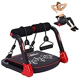 Ab Machine, Core & Sit Up Exercise Equipment for Home Gym, Ab Workout Equipment for Stomach Workout, Resistance Bands, 4 Resistance Levels, Adjustable, Automatic Rebound, Ab Trainer Machine