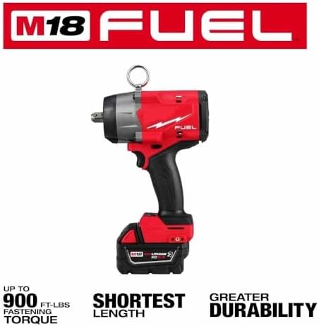 The M18 FUEL 1/2” High Torque Impact Wrench w/ Pin Detent Kit delivers up to 900 ft-lbs of fastening torque, greater access in tight spaces, and greater durability. The Brushless Motor delivers up to 900 ft-lbs of Fastening Torque and 1,100 ft-lbs of Nut-Busting Torque, providing users with greater power for the most demanding applications. At 7.3” in length, the compact size gives users greater access in tight spaces. The robust design allows users to tackle the most demanding applications on the jobsite all while prolonging tool performance.