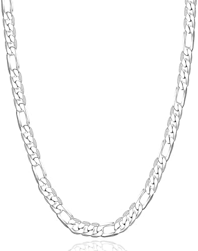 925 Sterling Silver Figaro Chain Necklace 5mm – Sterling Silver Chain for Men and Women, Durable Mens Silver Chain, Hypoallergenic Nickel-Free Silver Necklace, Waterproof, Lobster Clasp, Gift Ready
