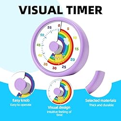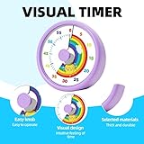 60-Minute Visual Timer for Kids, Visual Countdown Timer for Classroom, Home, Kitchen, School, Work, Kids Timer with Rainbow, Pomodoro Time Management, Non-Ticking (Purple)