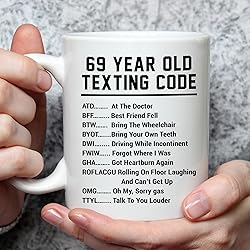 1956 Coffee Mug 69 Year Old Texting Code – Gag Gifts for Men Women Seniors, 69th Birthday Gifts for Dad Mom Grandpa Grandma, Retirement Gift Joke Novelty Cup 11oz Ceramic Coffee Mug